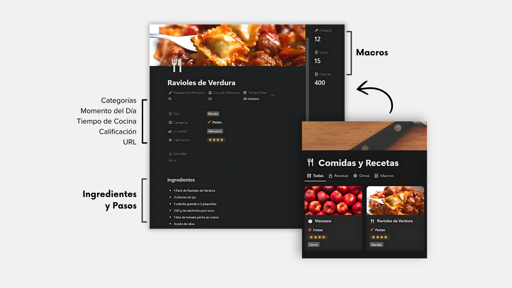 Control de Alimentación: Plan, Recetas & Macros | Notion Template